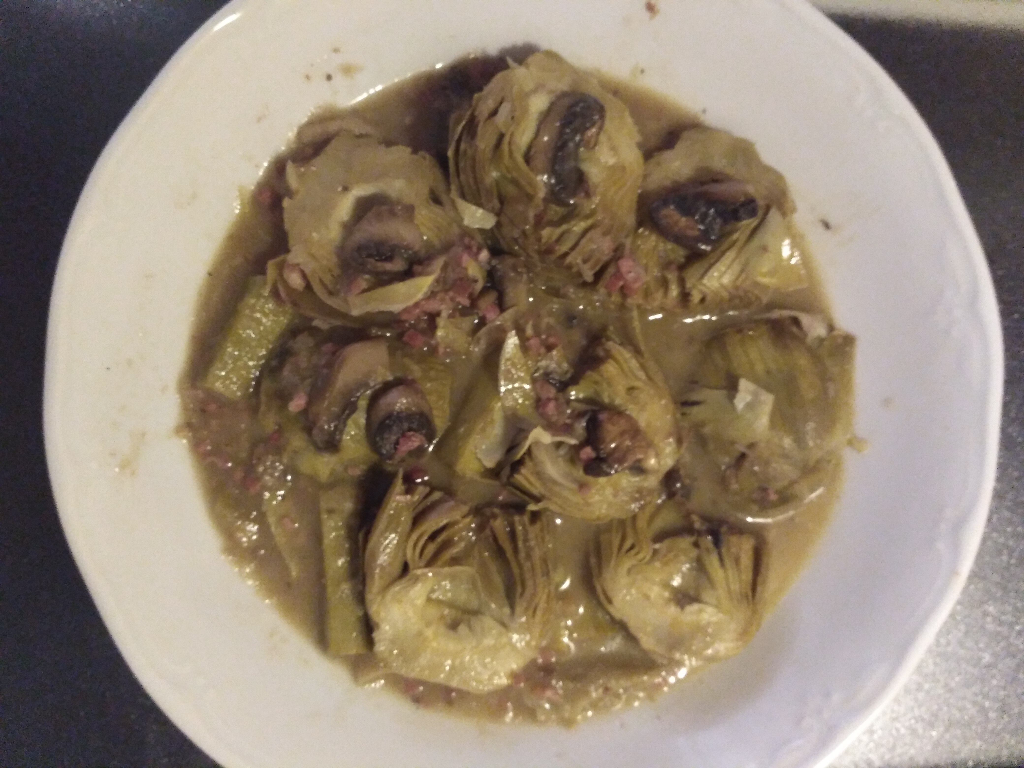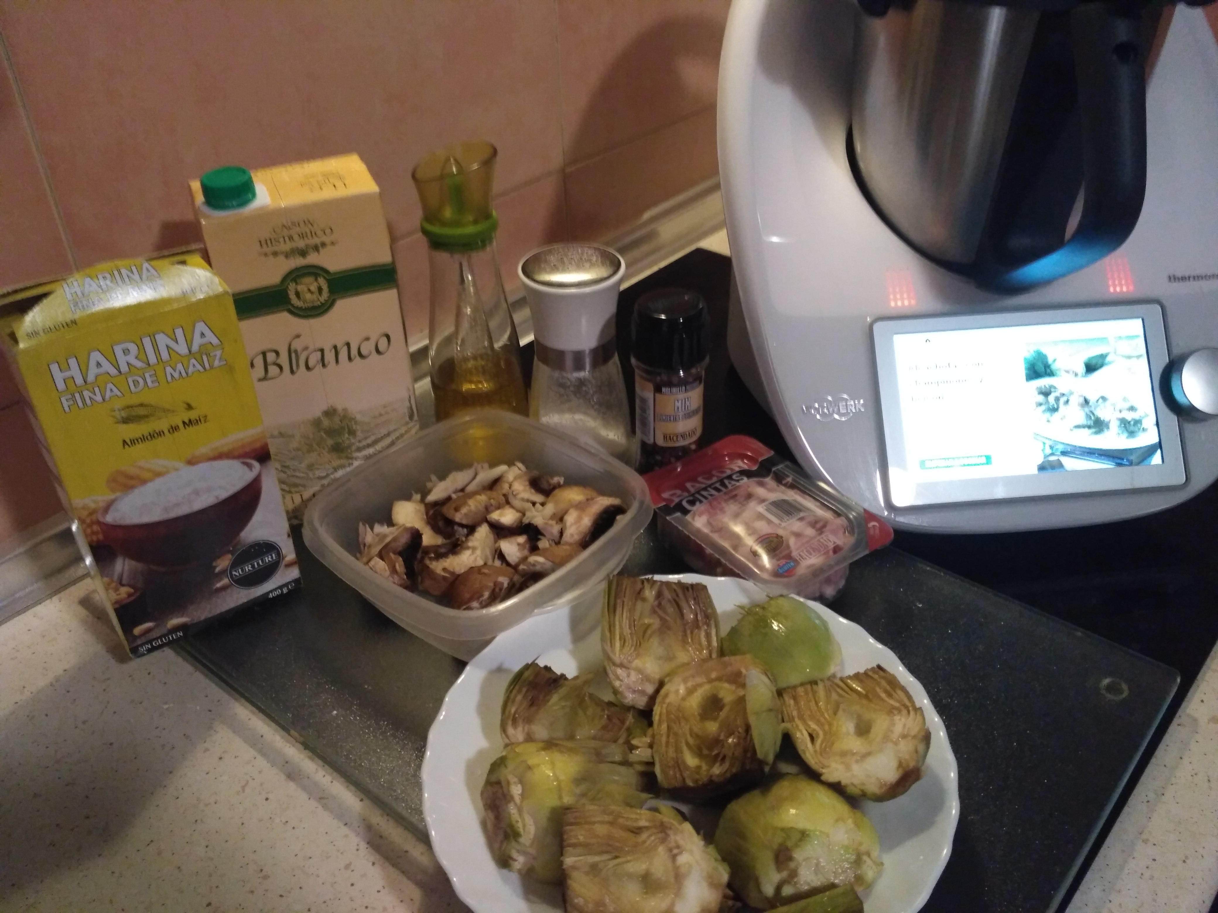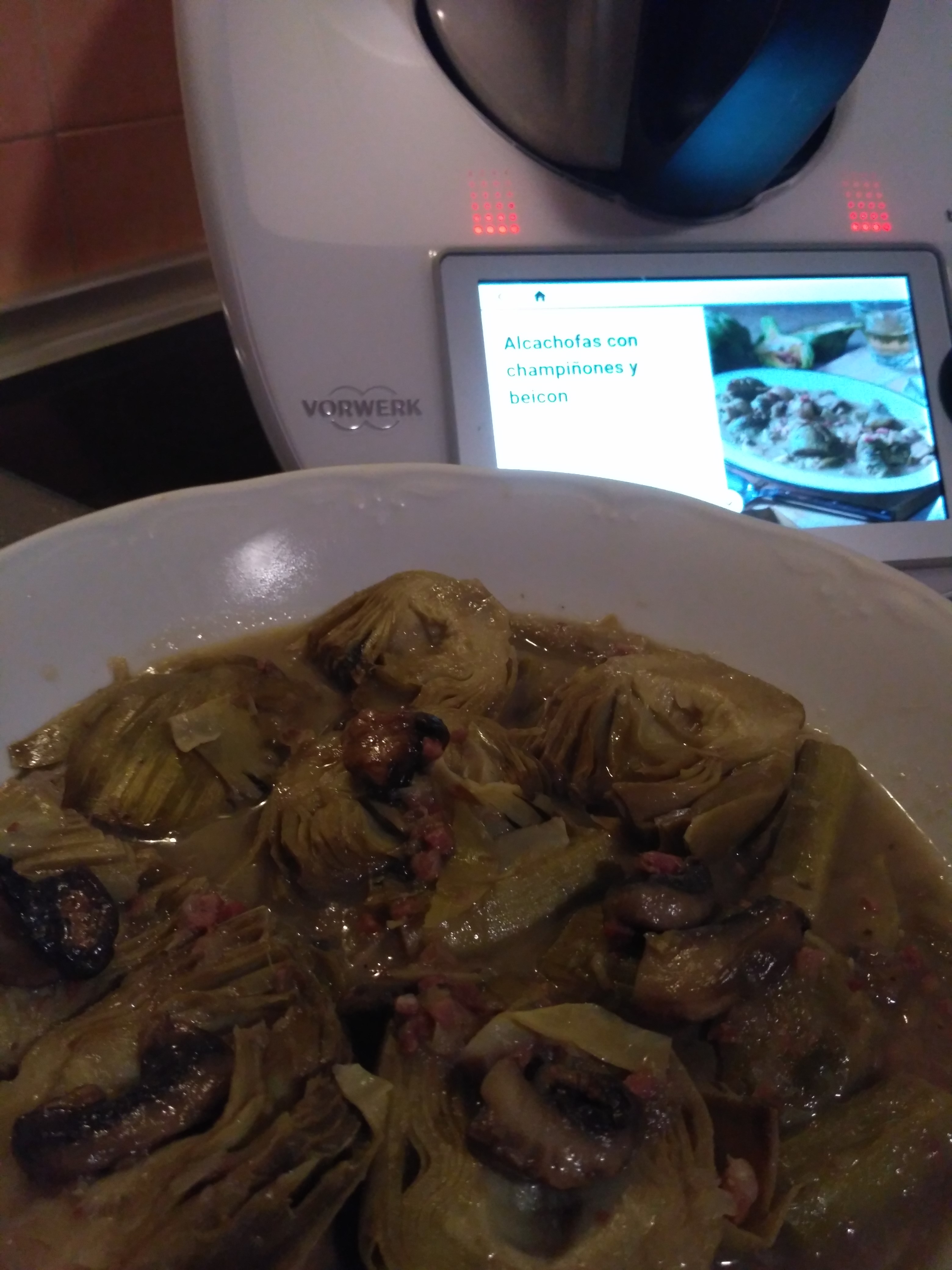 Alcachofas con champiñones y beicon Thermomix