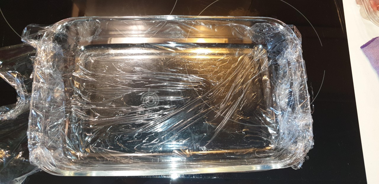 - Lo ideal es utilizar un molde de silicona, pero si no tenéis, como es mi caso, podéis forrar un molde de otro material con film transparente, como indico a continuación.